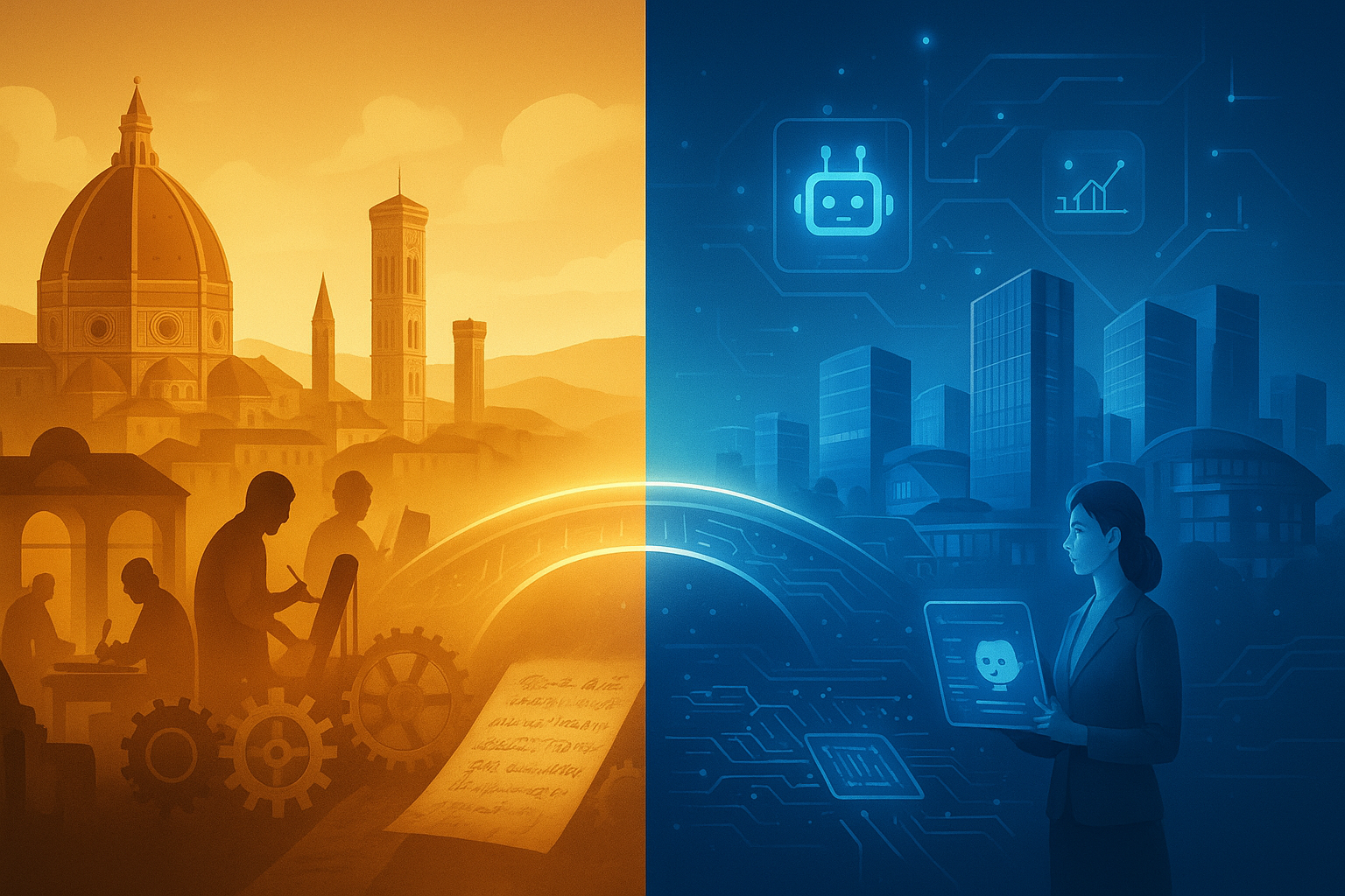 O Vale do Silício representa hoje o que Florença foi durante o Renascimento italiano: um centro de inovação que está redefinindo nossa forma de trabalhar e nos comunicar. Assim como Leonardo da Vinci e Michelangelo revolucionaram a arte nos séculos XV e XVI, empresas como Google, OpenAI e Nvidia estão moldando o futuro através da Inteligência Artificial.